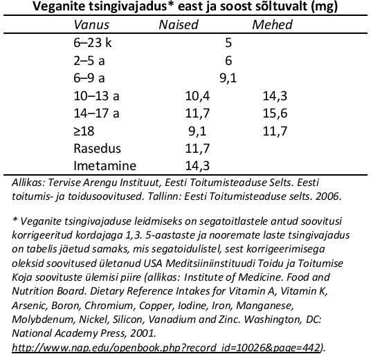 2. Taimetoitlaste tsingivajadus on Eesti toitumis- ja toidusoovituste kohaselt 25–30% suurem segatoitlastele antud soovitustest
