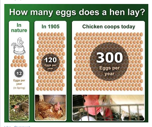 Millegipärast arvame me, et kui linnud, kes aastatuhandeid kestnud ekspluateerimise ja geneetilise manipuleerimise tagajärjel käituvad niiviisi, nagu inimesed on neid aretanud, siis on see „loomulik”, ja me jätkame nende ärakasutamist (vahepeal pobiseme ainult midagi lindude heaolust ja nende kohtlemisest).