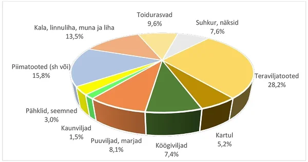 Näidistoidukorvi kaloritest andsid kaunviljad vaid 1,5%, mida on ligi kolm korda vähem kui lisatavaid suhkruid (suhkur, mesi ja moos) ning ligi 19 korda vähem kui piima-, liha- ja munatooteid.