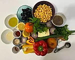 - Kuni ahi kuumeneb, lõika tofu 1-2 cm suurusteks tükkideks ja sega kausis koos kurnatud ja loputatud kikerherneste, suitsupaprika, oliiviõli ja näputäie soolaga, kuni kõik on ühtlaselt segunenud.