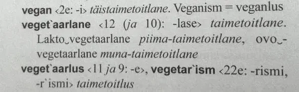 vegan-vegani-veganit. Õigekeelsussõnaraamatus ÕS on sõna „vegan“ täiesti olemas aastast 2013. Ekslik on kirjutada vegaan või veegan.